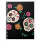 Carnet Jour des Morts crânes et fleurs de sucre Noir