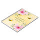 Jaune, arrière - plan blanc avec un motif de nid d'abeille. Décoré de fleurs de fleurs tropicales roses, d'hibiscus et de jolies bourdons. Modèles pour votre nom, titre et texte. Parfait pour garder vos notes à l'extérieur de la maison.