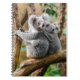 Ours koala adulte avec enfant sur le dos, traînant dans un arbre en Australie.