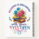 Design coloré et dynamique avec un dragon avec une pile de livres, le top ouvert avec des roses bleues et roses. Le texte coloré dit : "Lire c'est rêver les yeux ouverts". Ce design est disponible sur une grande variété de produits.