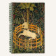 Carnet avec la tapisserie médiévale La licorne en captivité (1495-1505). La septième tapisserie de The Unicorn Tapestries, également connue sous le nom de The Unicorn Rests in a Garden, montre une licorne blanche avec un collier bleu assis à l'intérieur d'une clôture. L'herbe verte et de belles fleurs entourent la licorne. Un cadeau fantastique pour les collectionneurs d'art médiéval et les amateurs d'imaginaires !