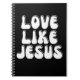 Amour Comme Jésus. Simple, mais si profond. Profitez de ce carnet en spirale d'inspiration hippie qui rappelle le Mouvement Jésus des années 60. Ce serait le cadeau parfait pour les dames dans votre étude de la bible, ou encore mieux comme un cadeau pour vous-même! Bon shopping !