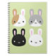 4 races différentes de lapins lapins mignons sur un arrière - plan vert pour le printemps et Pâques.