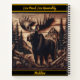 Un impressionnant relief d'orignaux sculpté dans le bois foncé s'élève sur fond d'arbres et de montagnes, mettant en valeur l'artisanat et la beauté de la nature. REMARQUE Pour modifier des couleurs de texte ou de bordure, utilisez l'outil Modifier à l'aide de la conception