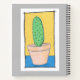 Le carnet de cet artiste est décoré avec l'art naïf d'un Prickly Pear Cactus, et peut être personnalisé avec votre nom et vos mots. La composition est dessinée à la main à l'aide de stylos et d'aquarelle, d'un seul cactus lobé dans un pot de fleurs. L'arrière - plan est jaune et bleu, le pot est beige rose et le cactus est très vert et épicé, le tout contenu dans une mince bordure noire, avec un entourage blanc. C'est un exemple charmant d'art simple, naïf. Le dessin est également à l'arrière du carnet.