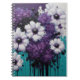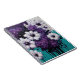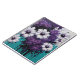 Un design abstrait de fleurs violettes et blanches sur aqua avec gouttelettes violettes