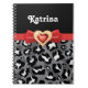 Carnet Léopard noir blanc glamour, arc rouge & bijou