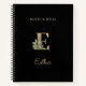 Le carnet noir élégant est doté d'un monogramme botanique doré au centre.