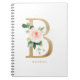 Carnet monogramme fleuri B féminin et joli lettre. Il présente des fleurs blanches et roses rousses et des accents de verdure avec une typographie fausse feuille d'or. Personnalisez en ajoutant un nom ou une courte phrase. Ce carnet monogramme à lettre florale sera parfait comme cadeau.
