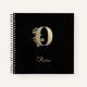 Le carnet noir élégant est doté d'un monogramme botanique doré au centre.