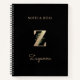 Le carnet noir élégant est doté d'un monogramme botanique doré au centre.