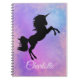 Montrez votre style avec ce carnet nommé fait sur commande de licorne ! Caractéristiques de conception ce un bel arrière - plan hued pourpre de galaxie de nuages et d'étoiles d'arc-en-ciel rose et bleu avec une silhouette noire magique épique de licorne au centre. Il y a une tache pour personnaliser le carnet au fond avec votre propre nom ou le texte, le défaut est la copie cursive blanche. Frappez juste le bouton de personnalisation pour entrer en votre texte désiré. Vous pouvez également changer la police, et la couleur de police si vous souhaitez en frappant le bouton de personnaliser. Fait un grand cadeau pour la licorne, l'imaginaire, la mythologie, le Pegasus, ou les amants de cheval ! Cette conception est également disponible dans d'autres couleurs et sur des autocollants.