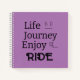 "Life is a Journey Enjoy the Ride" is an inspirational phrase to motivate you while planning your dreams. Perfect gift for friend or loved one. Black lettering on lilac background. Lilac color on both back and front covers. Hard or soft covers available.