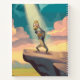 Cette scène emblématique est dessinée dans un style peint stylisé, représentant Rafiki tenant le nouveau-né Simba tout en se tenant au bord du Rocher de la Fierté, présentant le nouveau prince au royaume.