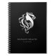Logo de silhouette de profil féminin élégant et moderne en blanc sur fond noir, cahier personnalisé. Le modèle fournit deux lignes pour le texte personnalisé.