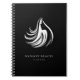 Logo élégant et moderne de profil de silhouette féminine en blanc sur fond noir, cahier personnalisé. Le modèle fournit deux lignes pour le texte personnalisé.