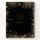 Un fond noir, décoré de poussière de paillettes factices, scintille. Personnalisez et ajoutez votre logo d'entreprise, initiales de monogramme, nom et titre. Lettres dorées et blanches. Votre logo d'entreprise à l'avant et à l'arrière.
