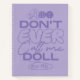 Possède ton pouvoir avec la citation de Lola ! Ce design audacieux présente la silhouette de Lola Bunny à côté de l'emblématique "Ne jamais m'appeler poupée", célébrant sa force et son indépendance. L'Est. Le détail de 1996" apporte une touche de nostalgie. Personnalisez votre équipement Zazzle - du vêtement aux accessoires - avec cette oeuvre d'art habilitante. Montrez votre amour pour Lola Bunny, confiante et sans excuses, et faites une déclaration avec ce design unique!