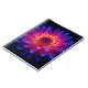 Stellar Burst explodes from a blazing yellow-orange core through hot pink into electric blue tips, dusted with glittering, cosmic droplets. This radiant macro art captures a supernova-like energy in stunning botanical detail