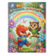 Spark a world of imagination with the Rex and hoots magical adventure spiral notebook this vibrant cover features everyone's favourite duo Rex the happy orange dinosaur and hoot the wise little owl playing under a giant glowing rainbow surrounded by a field of colourful flowers butterflies and magical sparkles this high detail illustration is the perfect place for kids to practice their letters draw their own adventures or keep as a special school jour