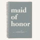 Simple minimaliste moderne personnalisé Silver Grey vert Maid of Honor Carnet