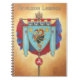 Une bannière héraldique présente un dragon gallois entouré de couronnes et d'épées sur un bouclier, contre un arrière - plan de tentures rouges et bleues. Le poteau central est surmonté d'une couronne et dispose d'un triskele près de la base. Cette image est tirée de l'extension des Légendes Arthuriennes de Sorcery : Realm contesté.