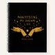 Ce carnet "Manifesting my dream life" présente un design noir et or avec des mains mystiques et un nom personnalisé.