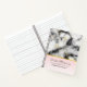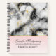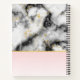 Carnet de spirale avec une motif marbrée élégante et moderne. Marbre blanc, noir et gris fumé avec de minces rubans de tourbillons en faux or dans tout le motif. Un dégradé rose clair arrière - plan sous la motif en marbre.