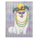 Cute American Eskimo Dog, vêtu d'un masque festif, de casquette et de perles de jester, prêt à s'amuser sur Mardi Gras ou à tout autre moment. Un cadeau idéal pour vous-même et votre famille et vos amis épris d'Eskie.