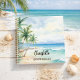 Plage tropicale, vagues et palmiers, aquarelle. Personnalisez et ajoutez le nom de votre servante. Script de style manuscrit noir.