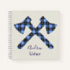 Carnet extraordinaire pour l'utilisateur mariage, cet article présente un graphique à double axe croisé bleu et noir plaid sur un arrière - plan gris. Son nom est écrit sous la police bleue. "Usher" est écrit en bas en police bleue. Achetez votre carnet aujourd'hui ! Graphique X par : AMBillustrations http://www.etsy.com/shop/AMBillustrations/