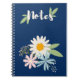Cette charmante couverture de carnet est ornée d'un élégant arrière - plan bleu marine agrémenté d'un agencement floral plein de vie, de marguerites, de fleurs rose pastel et bleues, et d'une végétation délicate. Le script moderne "Notes" se démarque magnifiquement, le rendant parfait pour le journalisme, le travail scolaire ou les idées créatives. Ce design apporte une esthétique fraîche et apaisante à votre expérience d'écriture quotidienne.