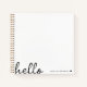 Un design de cahier minimal avec une citation de typographie grande en écriture manuscrite stylisée "bonjour" associée à votre propre nom et un cœur noir simple. Conçu dans un style minimaliste moderne en noir et blanc propre et simple. Le cadeau ou accessoire personnalisé parfait pour tout moment de l'année !
