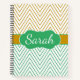 A stylish personalized notebook featuring a mint green and gold chevron pattern. Perfect for school, journaling, planning, and everyday writing. Add your name for a custom gift that stands out with modern color accents and a clean geometric look.
