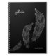 Contour d'illustration d'art d'automne de plumes dans gris-clair sur le noir sur un carnet personnalisé.