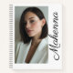 Ce carnet Moment vertical avec nom comporte une photo portrait pleine longueur et un nom de script vertical chic le long d'un côté. Avec une couverture blanche, du texte en encre noire et une ambiance éditoriale épurée, il crée un design moderne et mémorable inspiré des mises en page de magazines.