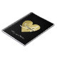 Black (custom-color) background with a cool and stylish monogram printed in a script font...a nice notebook for her with the image of a faux gold heart, to personalize name, initial and special subject