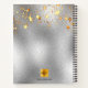 Un arrière - plan métallique à l'aspect faux argenté avec des faux étoiles dorées. Décoré d'un cadre géométrique en faux or et de fleurs aux couleurs bordeaux, rose et or rose, fleurons. Personnalisez et ajoutez vos lettres monographiques, vos initiales et un titre. Lettres de couleur noire. Peut être utilisé comme journal, prendre des notes, des listes de choses à faire.