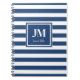 Carnet Monogramme de bande marine bleu et blanc