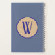 Une couleur solide à l'ombre d'un bleu crépusculaire rêveur est accentuée de monogramme dans la pêche miellée. Accentué de bleuet. Monogramme à personnaliser. Gros, audacieux.