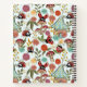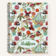 Nom personnalisable et carnet monogramme avec mignon loup peint en blanc, plantes, fleurs et champignons rouges avec effet fausse parties scintillant.