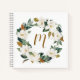 Aquarelle Magnolia Wreath Monogram Carnet | Carnet à couronne florale personnalisable avec des illustrations d'aquarelle magnolias, pivoines et couronne de coton. Ce sera un cadeau personnalisé parfait pour les demoiselles d'honneur, les diplômés et bien plus encore.