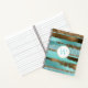Carnet en fil monogrammé brillant, avec des graphiques d'un aqua et de feuille de bronze et de parties scintillant à l'aspect motif rayé. Une mince zone de texte en cercle blanc bordée d'or, sur le devant du carnet, a un monogramme d'aqua simple lettre prêt à être personnalisé.