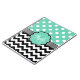 Mignonne, girly, tendance à la menthe vert et blanc pois motif, noir et blanc chevron motif zigzag, et bordure rayée avec un cadre de étiquette floral pour votre monogramme et nom personnalisés.