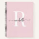 Cahier à spirale moderne, simple et élégant de couleur rose blush avec monogramme initial au nom personnalisé et écriture féminine. Ce design minimaliste de couleur unie présente votre prénom dans une jolie typographie à queue ornée (ou calligraphie), modèle de monogramme initial en blanc et noir sur fond de couleur rose blush. Facile à personnaliser. Cadeau personnalisé idéal pour une fête d'anniversaire, une pendaison de crémaillère, un mariage, un anniversaire pour 16 ans, une fête de mariage, une baby shower et pour quiconque aime le style minimaliste élégant.