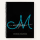 Carnet Monogramme élégant moderne noir sarcelle cursif