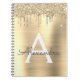 Cahier à spirale avec monogramme et initiale en métal brossé avec paillettes dorées, effet métallisé. C'est le cadeau idéal pour un anniversaire sweet 16, un mariage, une douche de mariée, un anniversaire de mariage, une baby shower ou une soirée d'enterrement de vie de jeune fille pour quelqu'un qui aime le luxe et les styles chic et glamour.