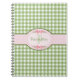 Un joli carnet vert en vichy monogramme de style champêtre avec un étiquette rose en vichy et un ruban rose filé. Personnalisez en ajoutant votre nom et vos initiales. Ca plaira à la fille stylée et féminine.