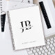 Une mise en page de texte élégante qui comprend vos initiales et votre nom ainsi que le nom de votre entreprise donne à ce cahier un aspect professionnel. Illustré ici dans un texte noir populaire sur fond blanc, le look est intemporel. Personnalisez avec vos informations.