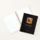 Élégant et élégant monogramme moderne et signature nom de script personnalisé carnet de carnet de croquis avec un carré en cuivre en or faux métallique avec nom initial et votre texte personnalisé sur un arrière - plan en cuir noir comme (TEXTURE IMPRIMÉE).